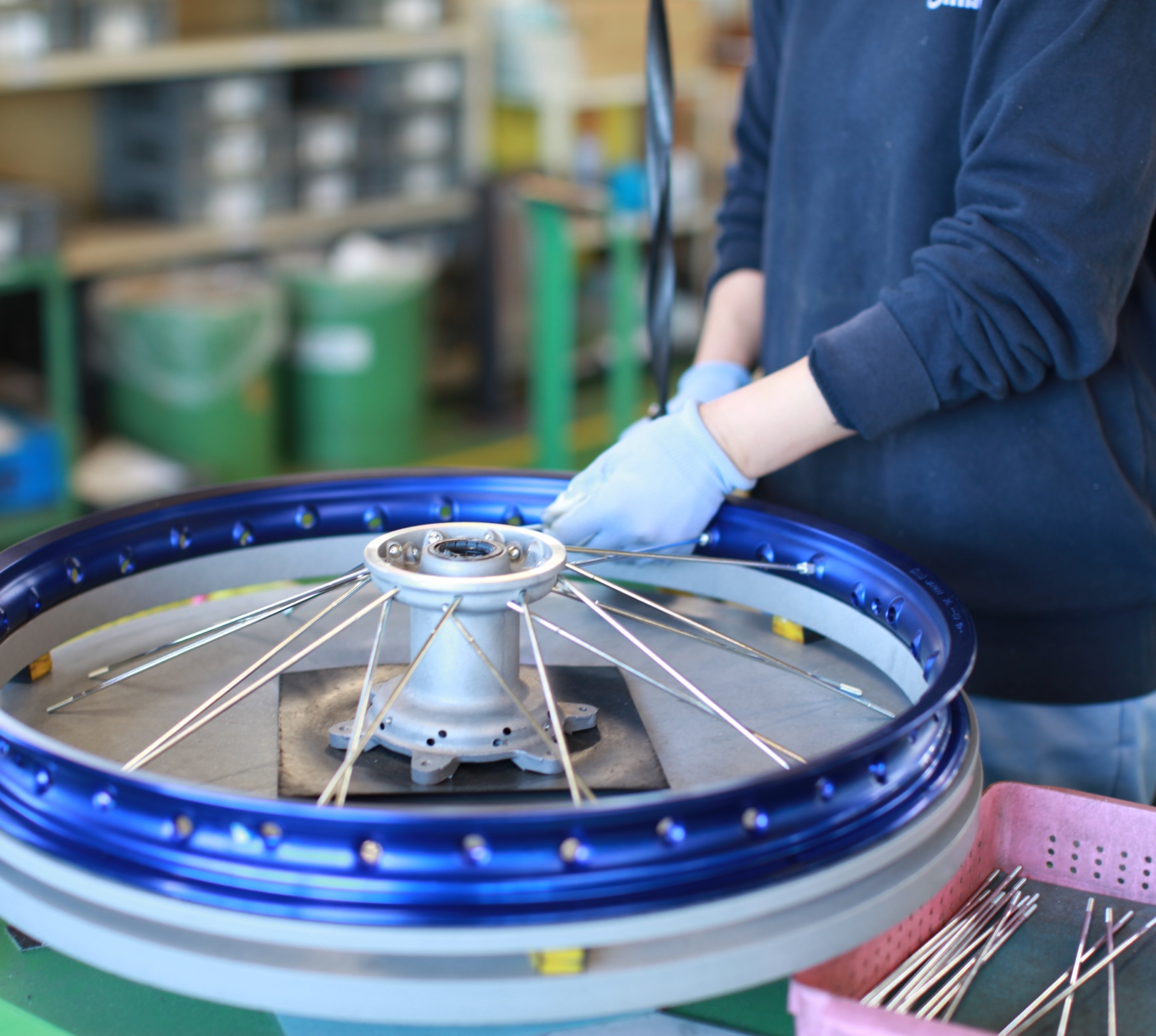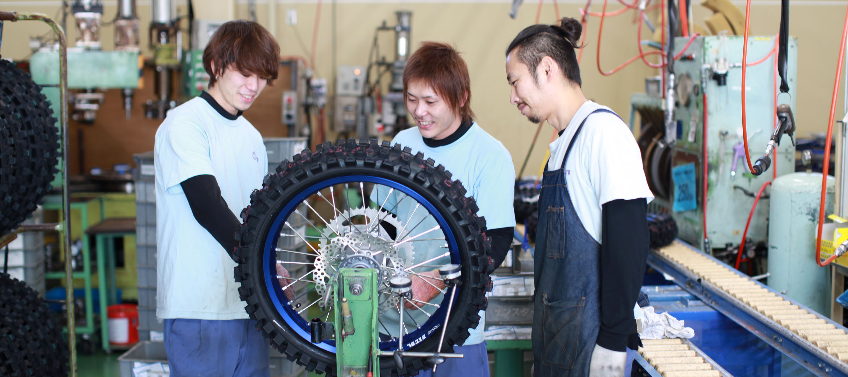 大村商会は、主にオフロードバイクに使用される「スポークホイール」の組立事業を手掛け、大手オートバイメーカー製品を扱っています。